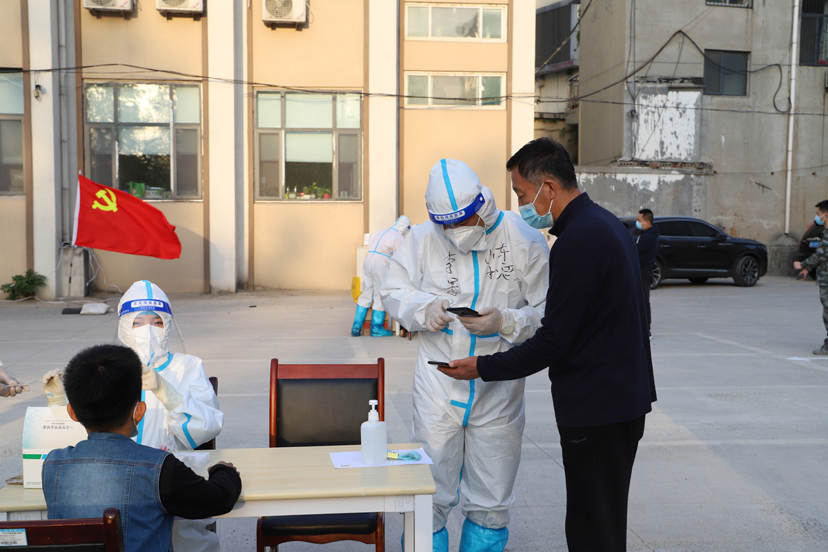 由人力资源部阴冠一、审计部石天禹、机料管理部李景仰、第二分公司赵书宇、第三分公司焦鲁坤、第六分公司魏中坤组成的突击队,在急难险重任务中冲锋在前,按照街道办要求以二级防护状态投入到此次疫情防控大筛查中。面对拥有20栋楼,2000多人的大社区,他们合理分工,有条不紊的开展扫码备案、维护秩序、挨家挨户敲门等工作。志愿服务从下午五点一直持续到晚上十一点,汗水浸透了防护服里面的衣服,脸上却透露出不畏风险、勇往直前的信念。