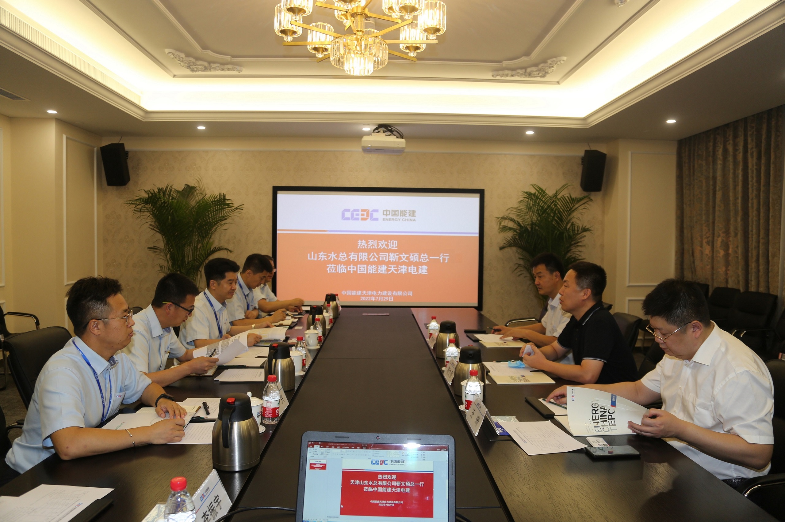 公司党委副书记、总经理靳文硕一行到中国能源建设集团天津电力建设有限公司座谈交流
