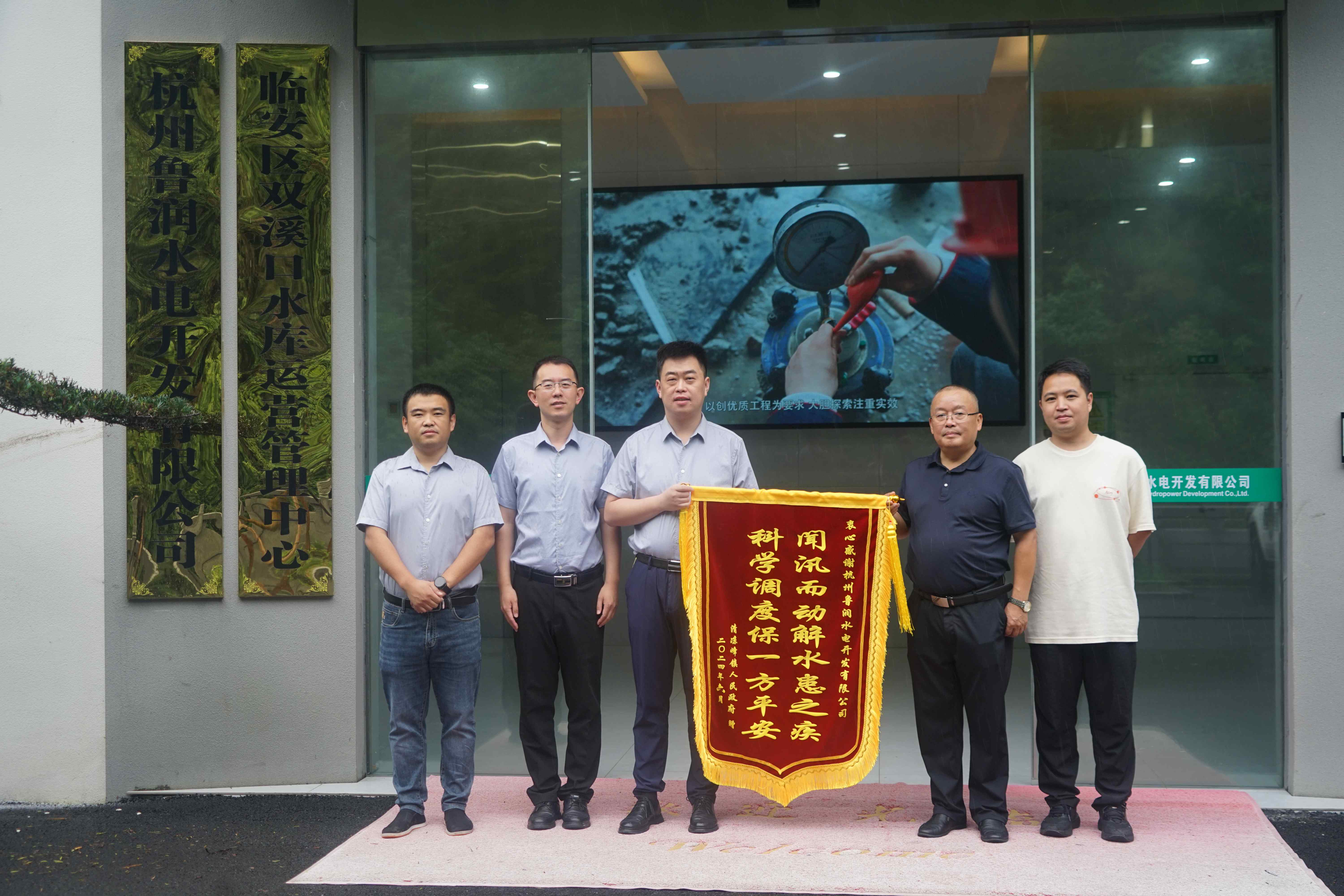 7月4日,浙江省正式出梅,临安区清凉峰镇党委委员方春辉代表镇政府送来了一面沉甸甸的锦旗——“闻讯而动解水患之急、科学调度保一方平安”,表达了对双溪口水库防洪利器作用的认可和杭州鲁润公司科学严谨高效工作的肯定。